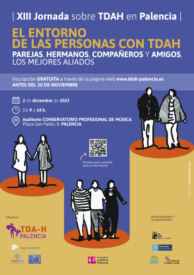 XIII JORNADA SOBRE TDAH EN PALENCIA ‘EL ENTORNO DE LAS PERSONAS CON TDAH’ | Parejas, hermanos, compañeros y amigos, los mejores aliados. Auditorio CONSERVATORIO PROFESIONAL DE MÚSICA, Plaza San Pablo, 8, PALENCIA. Inscripción GRATUITA a través de esta página en la barra lateral de la derecha ANTES DEL 30 DE NOVIEMBRE. FECHA: 2 DE DICIEMBRE DE 2023 de…
