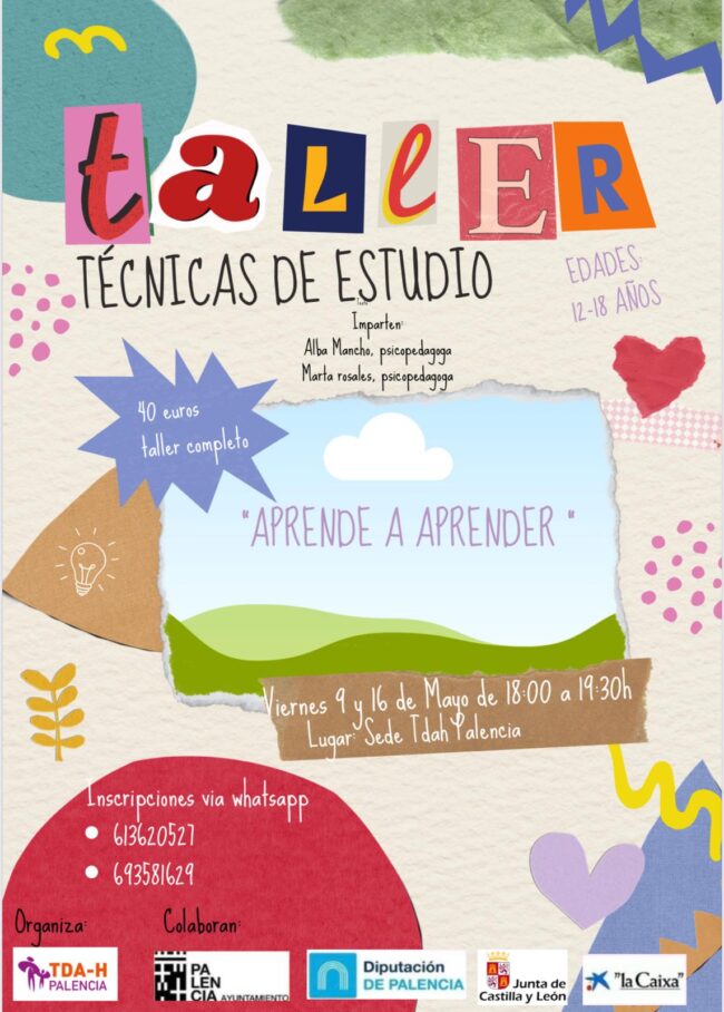 «Aprende a aprender» Impartido por Alba Macho y Marta Rosales (psicopedagogas) los días 9 y 16 de mayo de 18:00 a 19:30 en la Sede TDAH Palencia.
